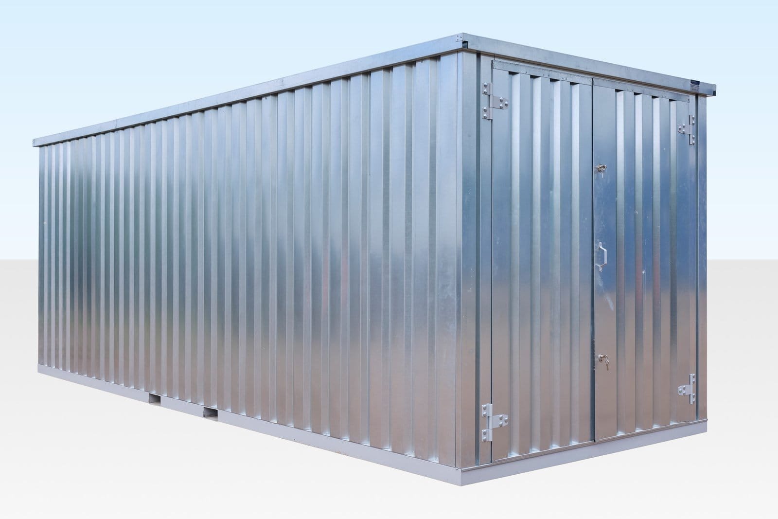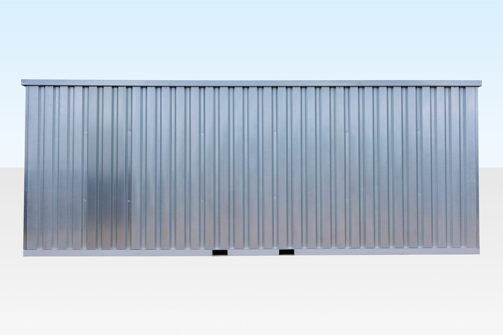 Este paquete de contenedores flat pack galvanizados de 6 metros, enlazados por los extremos, ofrece una solución de almacenamiento longitudinal, ideal cuando se necesita acceder fácilmente al fondo del espacio sin aumentar el ancho total.